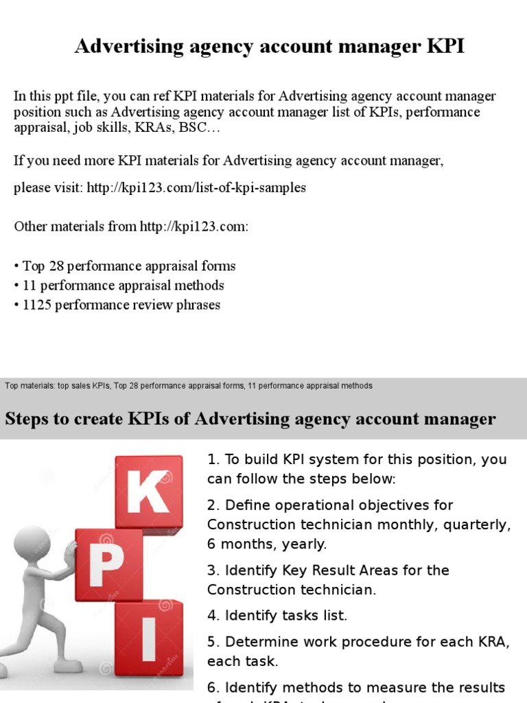 Advertising account executives (or simply account executives) are the main liaison between advertising and media agencies and their clients. Job description the advertising account manager also leads the agencies ideas presentation, ensuring the ideas remain faithful to the brief and that it is kept within the time frame and budget. Key account manager job summary 1. An account director oversees requirements for client accounts in the advertising, public relations and marketing industries. Our account director serves as the point of contact for our clients, directing and coordinating all advertising.